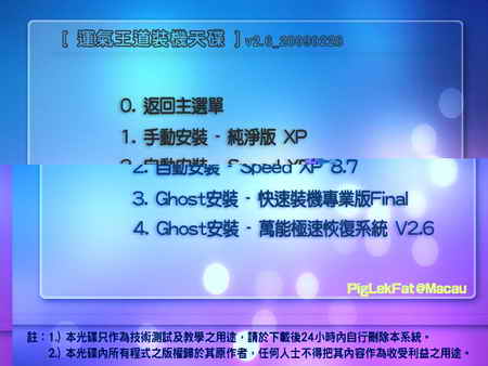 第三步:進XPE,用GHOST手動把光碟根目錄中的"ghostxplv2.gho" GHOST到硬碟第二分區;